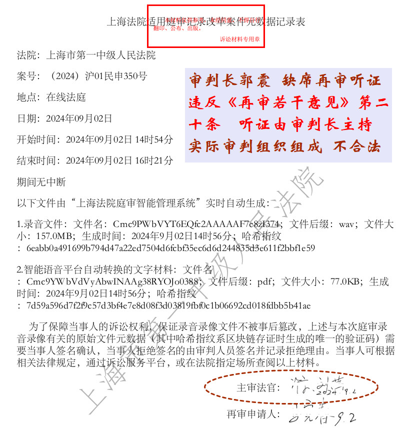 【证据2:元数据表(2024-09-02)】没有审判长郭震签字。